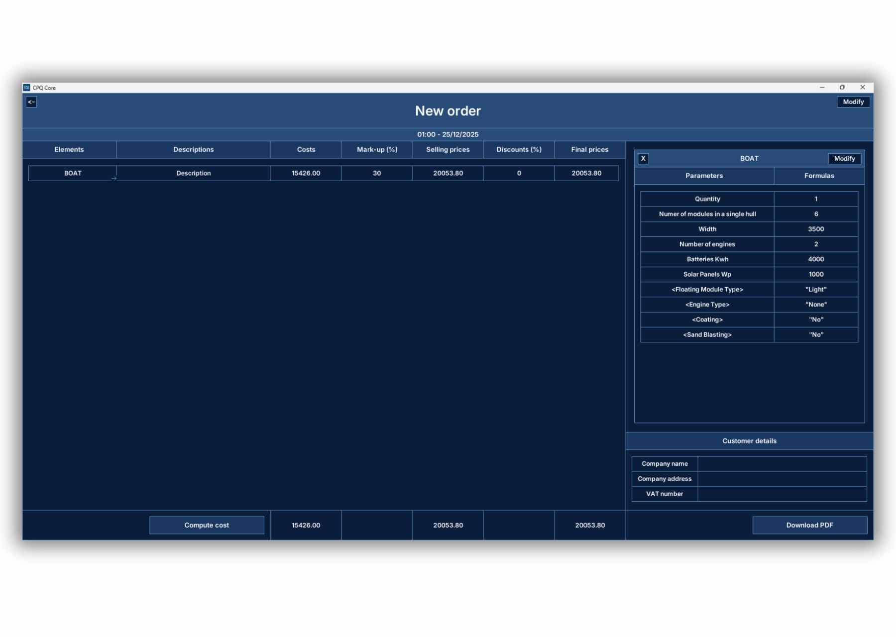 La struttura centralizzata permette di aggiornare rapidamente listini e processi, riducendo tempi e costi di manutenzione, mentre controlli automatici e suggerimenti in tempo reale garantiscono la correttezza di ogni formula e di ogni dato inserito.